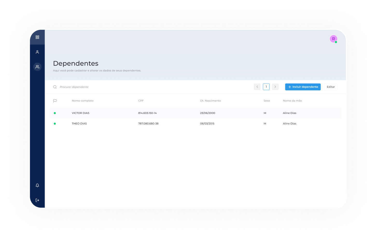Gerencie aqui os dados de seus dependentes para a utilização de diversos serviços.